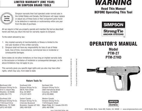 Web free operator's manuals for simpson test equipment. Always wear eye and ear protection; Never place your hand over the nose of the tool unless inserting a fastener and then only with the chamber empty.